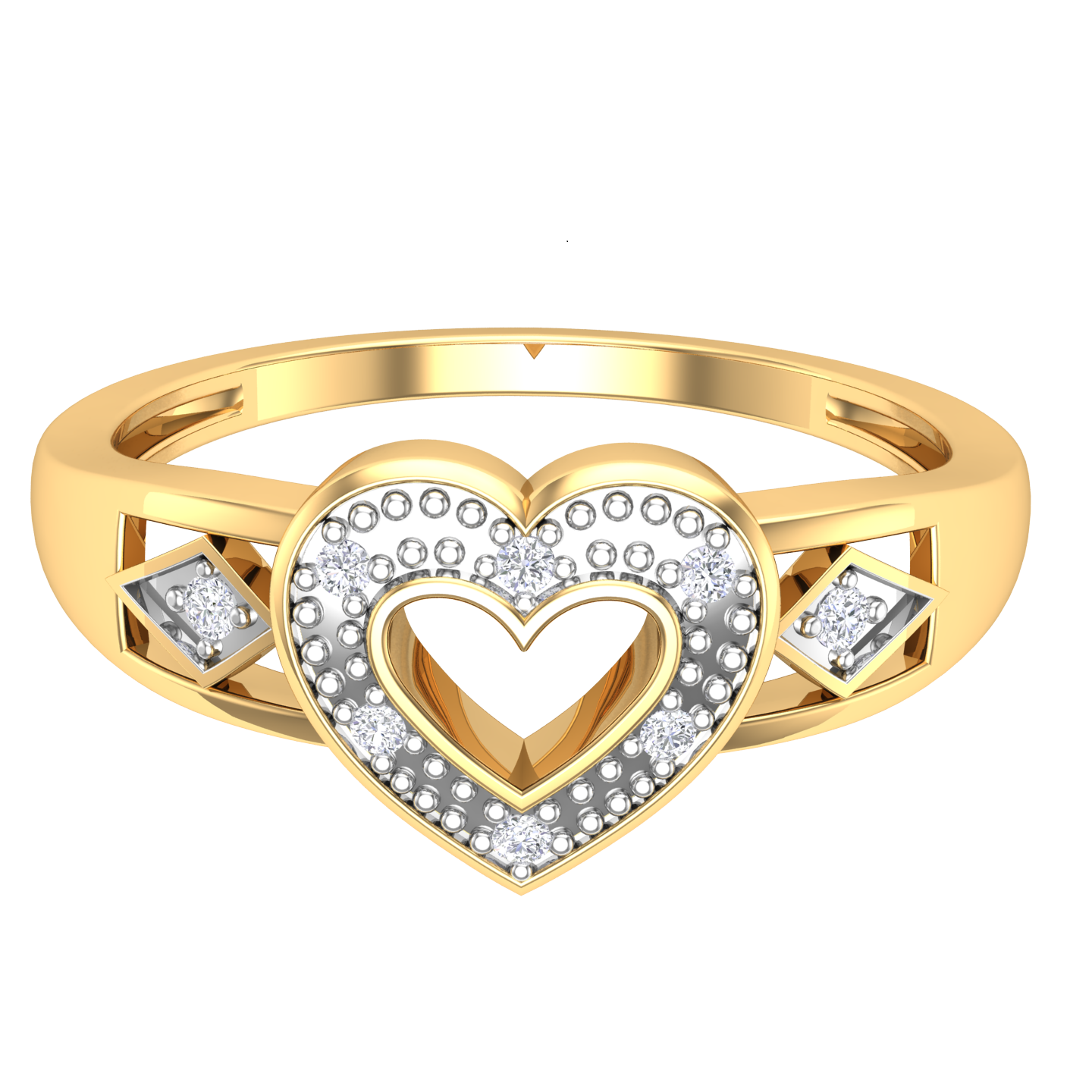 LOVE DIAMOND Gold Rings for Women 10k |Real Gold High Polish Ring | Yellow Gold with Natural Diamonds | White Diamond Jewellery For Wedding, Engagement Rings For Womens_DJR347